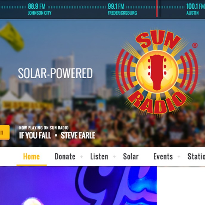 The Sun Radio guys asked us to ‘spice up’ the header for their existing website – we delivered an animated logo, a custom javascript widget to display the song currently playing on their station, and a cool animated top bar to communicate their various affiliate call-signs and frequencies. All of this in a responsive design that scales down to mobile devices.