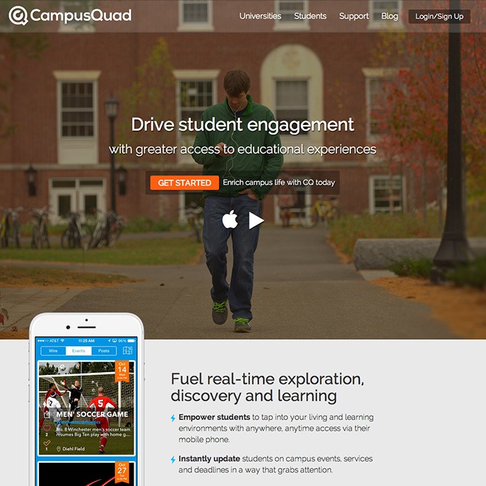 We did a full website redesign for CampusQuad, creators of a great mobile app that integrates into the daily lives college students. The site features large hero imagery, video for app demos, and call-to-action buttons that stick to the top of the window as you scroll down. AIRSHP assisted the client with the brand messaging and web strategy. The lead capture forms are custom-integrated with their salesforce account. The site layout is fully responsive – allowing for a great user experience across all devices and screen-sizes.