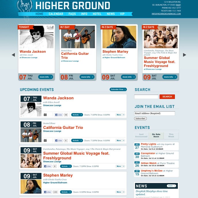 We designed and developed a responsive wordpress-powered website with custom cms features that allows them to promote and curate live music events around the country. The events listings feature the ability to sign up for ticket giveaway contests and to RSVP for shows – powerful tools to grow their email list and get music-lovers engaged with the brand.